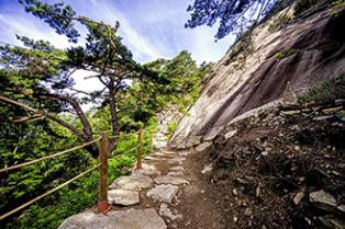 매표소에서 약 10분간 돌계단을 오르면 만나게 되는 하늘길은 마치 용의 날개 위를 걷는 듯한 느낌을 줍니다. 수직 암벽에 설치된 이 길은 그 자체로 하나의 예술 작품이라고 할 수 있습니다.