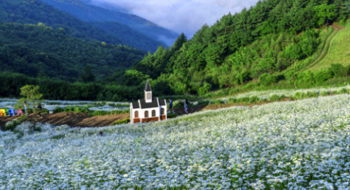 ✅ 샤스타데이지 꽃밭: 6-7월에 만개하는 하얀 꽃밭은 육백마지기의 대표적인 볼거리입니다.